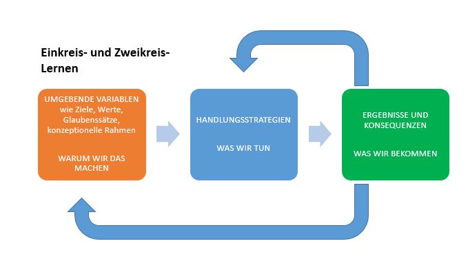 Der Begriff des single-loop- und double-loop-Learnings stammt von Chris Argyris. Im Double-Loop-Learning ergründen Sie die Frage „warum will die Organisation das?“ Sie schaffen die Voraussetzungen für tieferes Verstehen von Zusammenhängen und legen die Basis für tieferes Lernen.