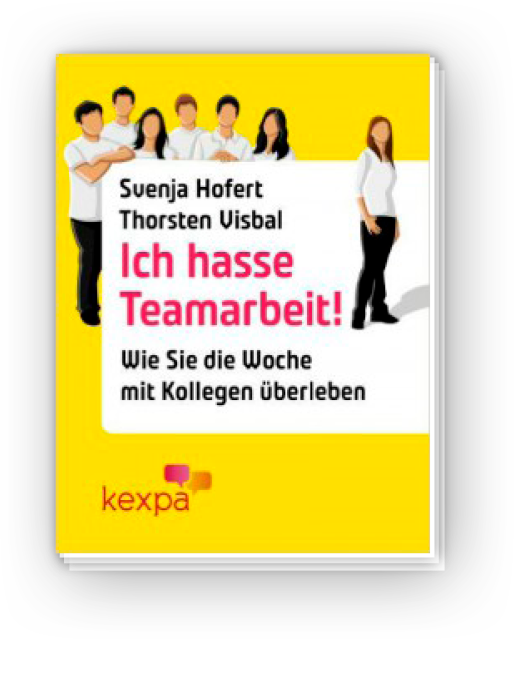 Dieses Kultbuch erschien 2011 beim damaligen Kultverlag Eichborn. Svenja Hofert hat die Rechte zurückerworben und verkauft es inzwischen als E-Book im eigenen Shop. In fast jeder Stellenanzeige locken Worte wie “Teamgeist” oder “Teamfähigkeit”. Doch im Arbeitsalltag ist davon wenig zu spüren. Da wird geredet und zerredet, bedeutet TEAM viel zu oft “toll ein anderer macht´s”. In diesem Buch berichten die Protagonisten Stephan, Lena, Ewa, Max, Bea, Uli und Udo, wie sie von kollegialen Besitzstandsbewahrern untergebuttert und rausgemobbt werden, miese Stimmungen ertragen oder die Fehler der anderen ausbügeln müssen. Sie fragen, wie es sich mit Faulpelzen, Selbstdarstellern und Egoisten halbwegs fruchtbar zusammenarbeiten lässt. Ihre “Trainer” Svenja Hofert und Thorsten Visbal zeigen, wie im Büroalltag intelligentes Überleben möglich ist. An jedem Wochentag geht es dabei um etwas anderes: Vom Meeting am Montag bis zum Umgang mit Selbstdarstellern am Freitag. Ein humorvoller und praktischer Ratgeber und Begleiter für jeden Tag der Woche. Prädikat: empfehlenswert. Dieses Buch erschien bereits in gedruckter Form bei Eichborn unter dem Titel “Ich hasse Teams.”