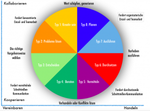Welche Form von Teamarbeit, wann gefragt ist, lässt sich am Circumplex-Modell von Joseph Ewan McGrath ablesen. Je mehr Aufgaben vom Typ 1 oder 2 im Mittelpunkt stehen, desto mehr ist ein Team 4.0 gefragt – und desto wichtiger ist es, das Team von anderen Aufgaben frei zu halten. Dazu gibt es im agilen Kontext die Frameworks wie Scrum sowie Rollenkonzepte. Scrum Master und Product Owner erledigen dabei Aufgaben vom Typ 3-8.